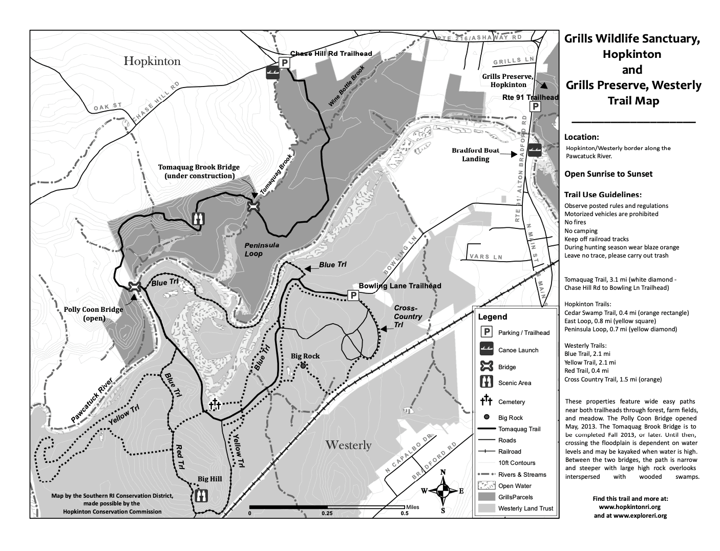 Tomaquag Trail 3.1 mi. (white diamond)—Chase Hill Road Trailhead (Hopkinton) to Bowling Lane Trailhead (Westerly)